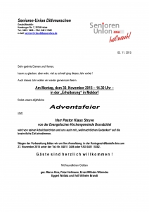 Wegen der Vorbereitung bitten wir um Ihre Anmeldung in der Kreisgeschäftsstelle bis zum 27. November 2015 unter der Tel.-Nr. 0481 / 3406 oder FAX 0481 / 5382.